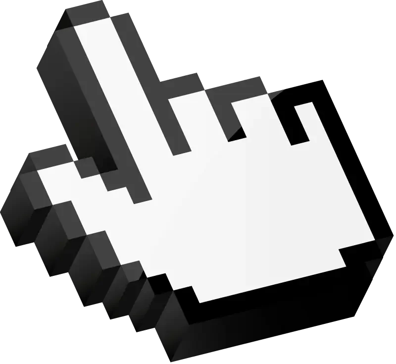 Pixelated white computer pointer cursor pointing upward.