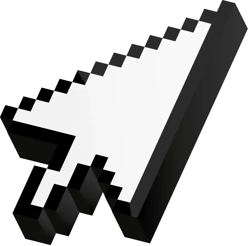 Pixelated white computer cursor arrow pointing upward.